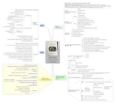 Некоторые авторы разделяют компьютерную криминалистику (computer forensics) и сетевую криминалистику (network forensic). Так же внутри форензики уже наметился один обособленный раздел - исследование программ для ЭВМ.