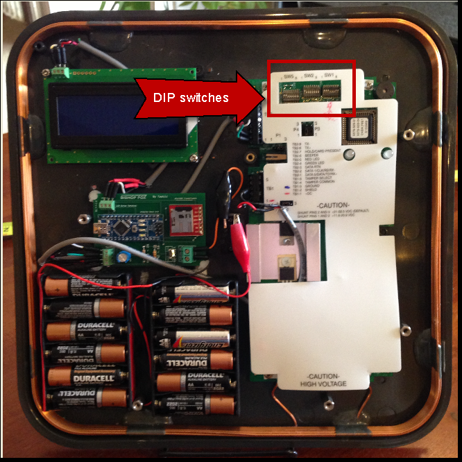 После снятия крышки у Tastic RFID Thief DIP-выключатель можно найти в правом верхнем углу. Чтобы понизить уровень шума до самого минимума, переключите выключатель SW1-4 в нижнее положение.