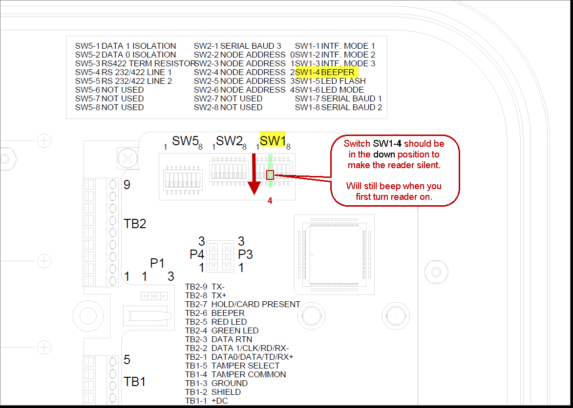 В первом методе мы просто переключаем одиночный DIP-выключатель. Устройство будет издавать звук только при первом включении. Все последующие считывания бейджей (обычно сопровождающиеся сильным звуковым сигналом) будут проходить в полной тишине.