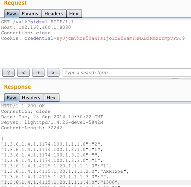 Ситуация была довольно странной. Я не мог понять, зачем нужна скрытая учетная запись, при помощи которой нельзя залогиниться в интерфейсе пользователя. Что же можно сделать, используя данный аккаунт? Само по себе веб приложение представляет собой html/js-обертку для CGI для получения/установки SNMP-значений в модеме. В предыдущих версиях прошивки для CGI-вызовов вообще не требовались «авторизационные» cookie. Этот баг был устранен несколько лет назад.