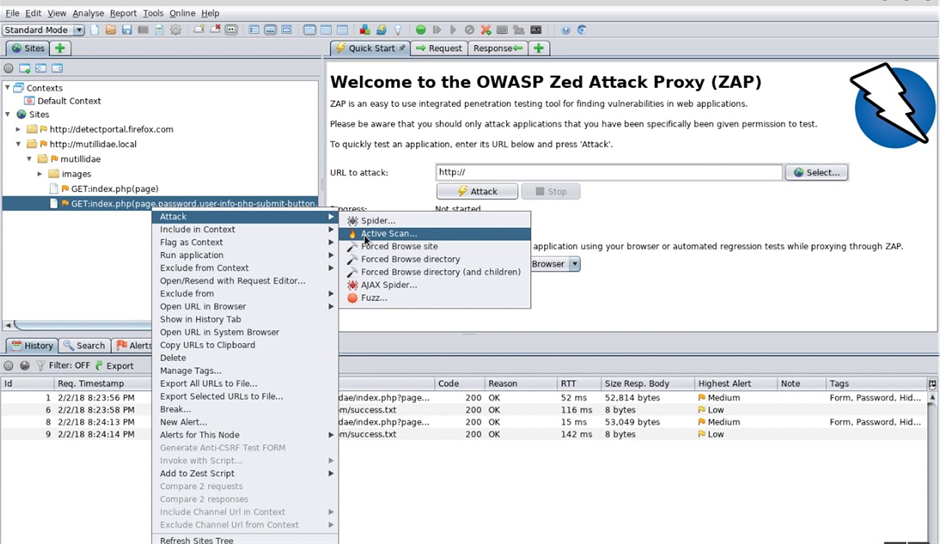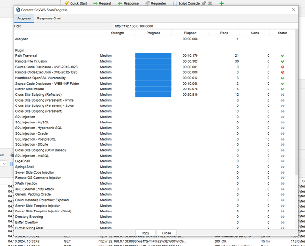 OWASP ZAP предлагает широкий спектр методов сканирования: пассивный и активный анализ, а также возможность ручной проверки для детального исследования с применением специализированных инструментов и методик. Он способен выявлять разные классы уязвимостей, которые могут быть использованы злоумышленниками в том числе для SQL-инъекций, межсайтового скриптинга (XSS) и обхода механизмов аутентификации.