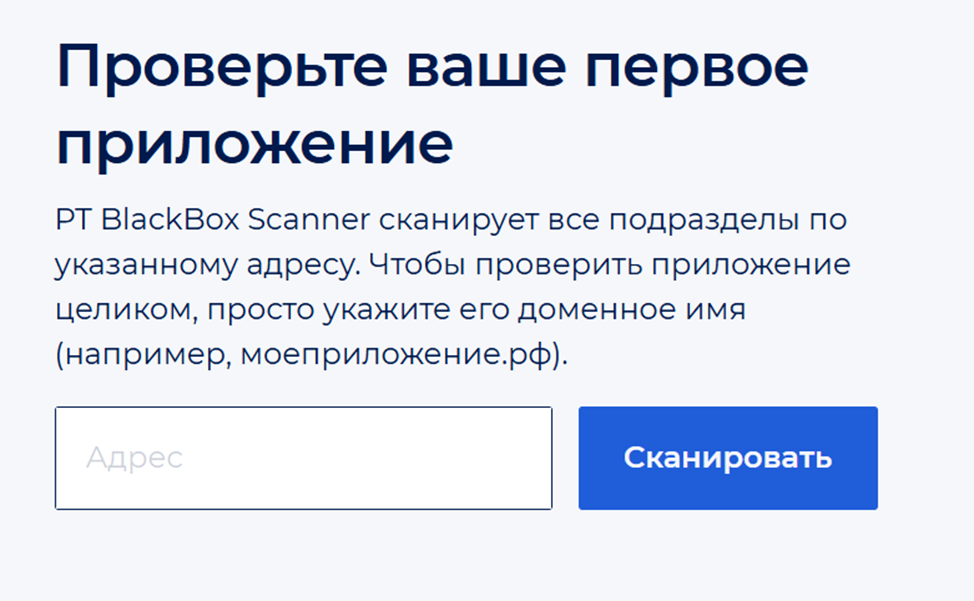 PT BlackBox Scanner — открытое решение компании Positive Technologies для динамического анализа веб-приложений. Сервис функционирует в формате облачного решения со свободным доступом. Это позволяет выполнять точечные проверки готовых приложений независимо от процессов разработки. Для использования PT BlackBox Scanner не требуется устанавливать дополнительное ПО или настраивать сложные конфигурации, достаточно указать доменное имя веб-ресурса на официальном сайте сервиса, после чего система автоматически выполнит анализ, имитируя реальные сценарии атак на приложение.