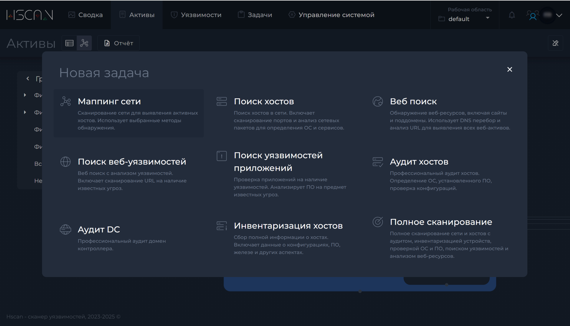 В HScan реализовано разделение на рабочие области. Это удобно для крупных компаний, когда инфраструктура может состоять из нескольких филиалов, а ответственность распределена. Ролевые модели и иерархия департаментов позволяют тонко задавать права доступа, в том числе по отдельным зонам, учитывать подчинённость при выдаче прав, а также точнее автоматизировать распределение задач при управлении уязвимостями (на конкретного сотрудника, подотдел, департамент или несколько департаментов).