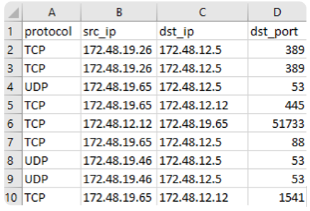 На выходе получаем структурированную таблицу с правилами в формате: protocol, src_ip, dst_ip, dst_port — готовую для загрузки в межсетевой экран.