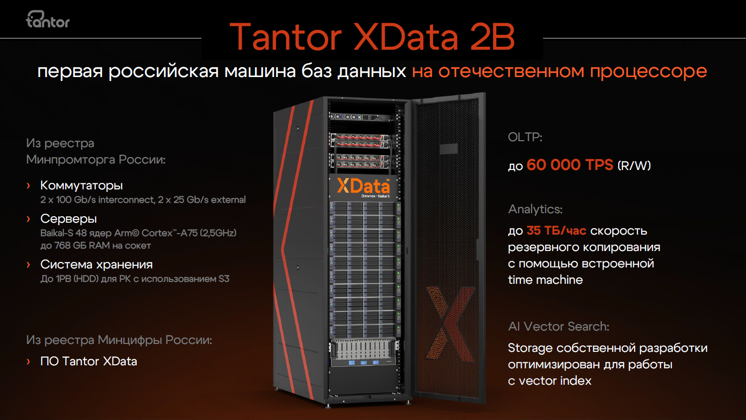 МДБ «Tantor XData 2B» – программно-аппаратный комплекс (ПАК), созданный на полностью отечественной элементной базе.