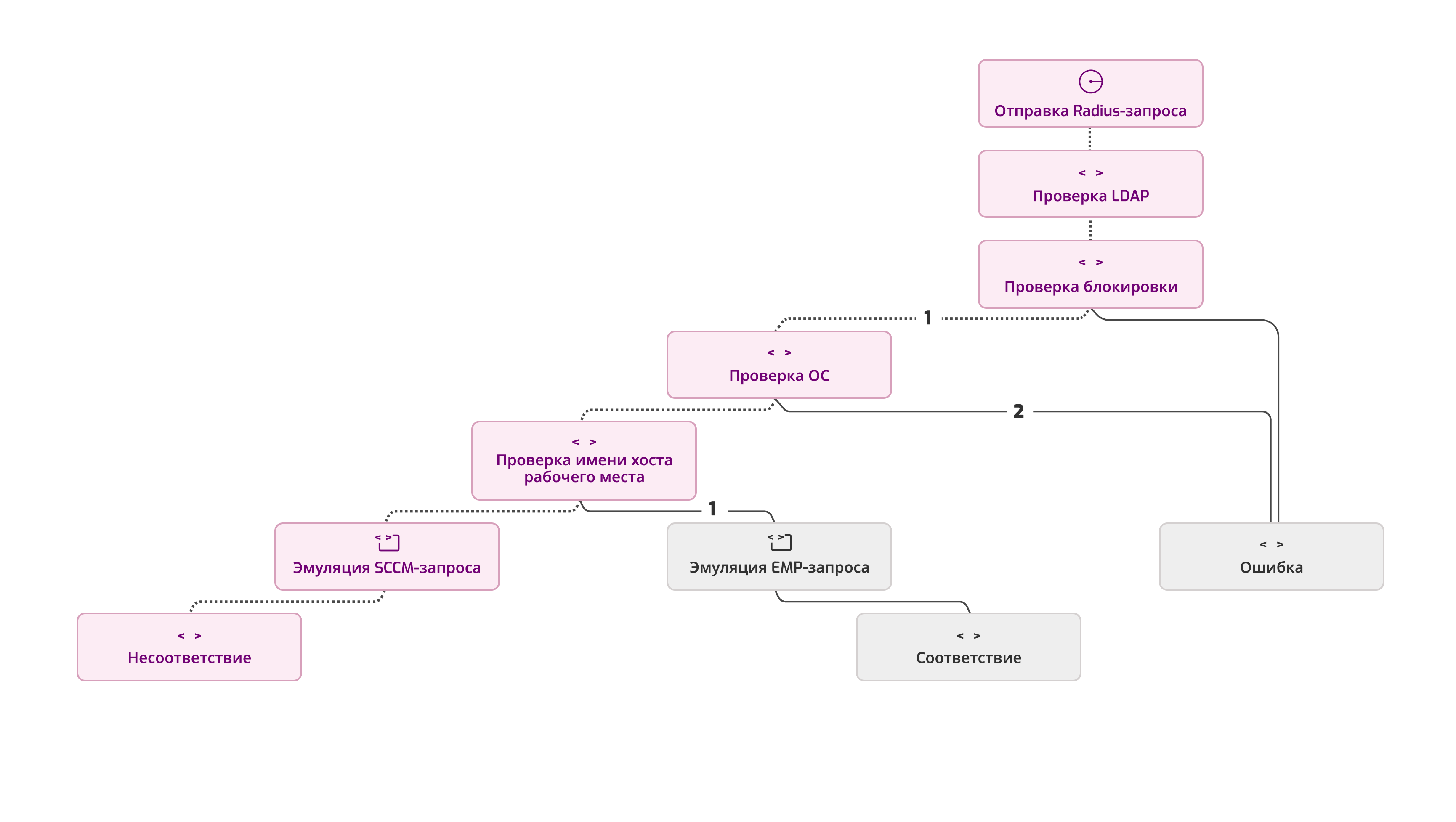 Рис.2 - Сценарий проверки комплаенса подключающегося удаленного АРМ