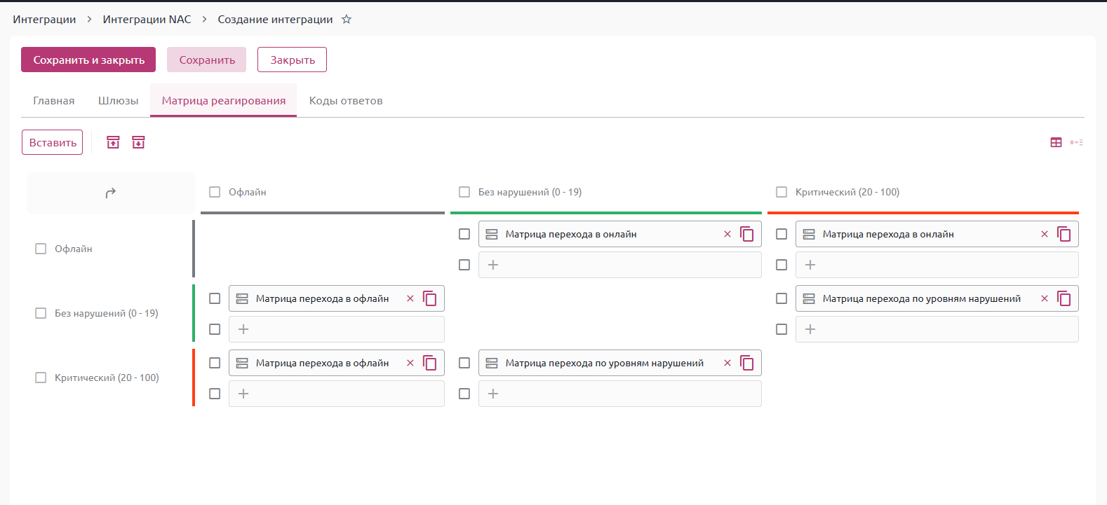 Рис.1 - Матрица реагирования на изменение состояний уровней нарушения (в разных вариантах)