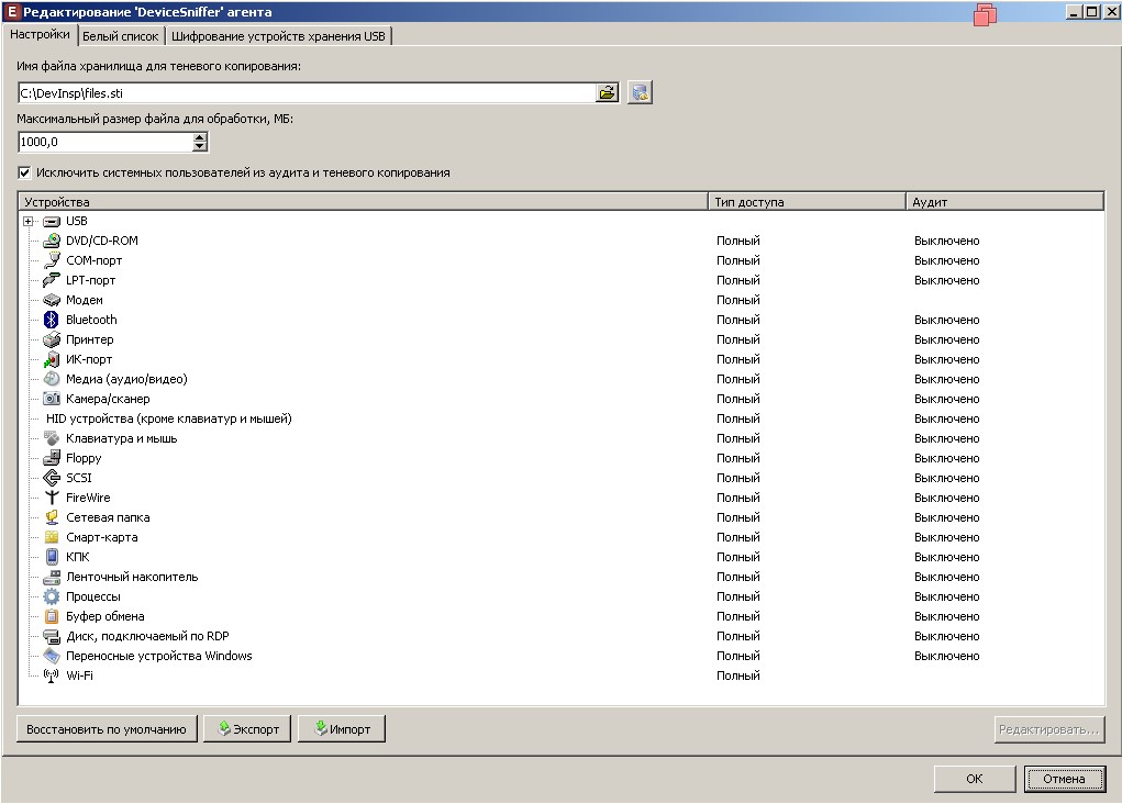 Рис 1. Настройки по разграничению доступа к периферийным устройствам