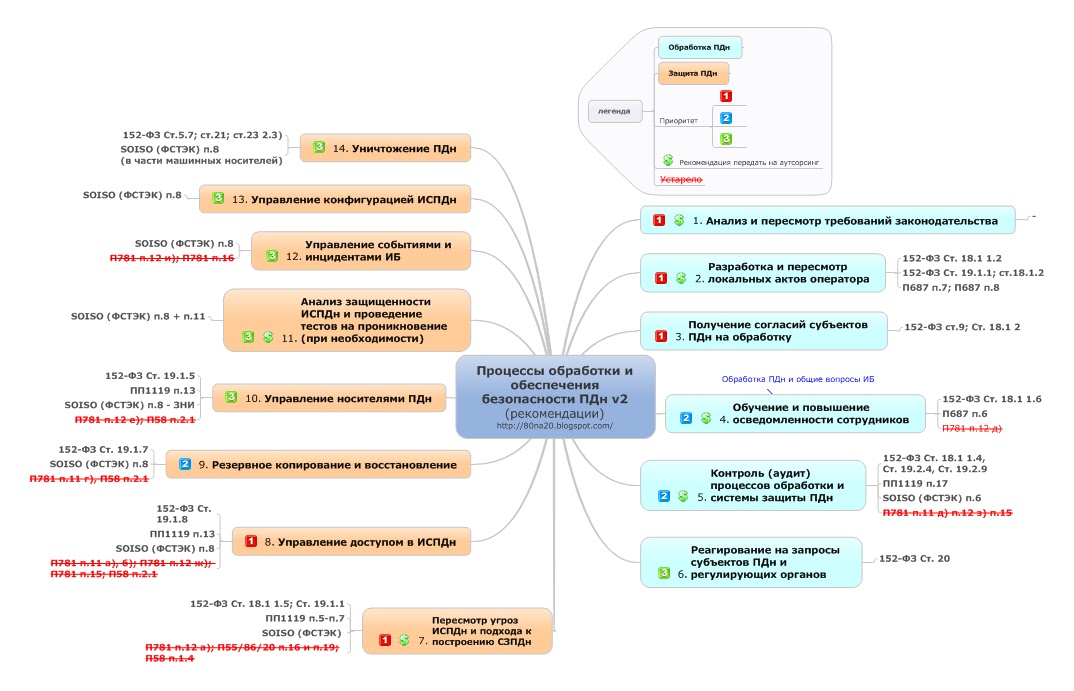 - Пометил цветом "общие вопросы и обработка ПДн", а также "обеспечение безопасности ПДн", поставил 3 приоритета (что внедрять в 1, 2 и 3 очередь)