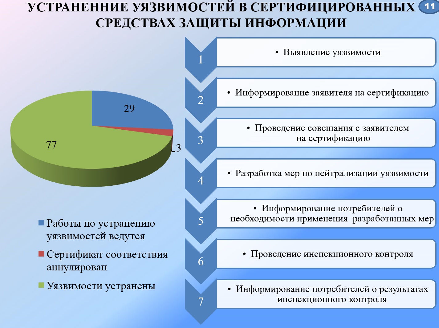 - Реакция разработчиков "не порадовала" ФСТЭК России: "время [на устранение] было затрачено просто колоссальное" (некоторые больше года), "мало того, некоторые из заявителей требовали за устранение уязвимостей определенные платы, а с нашей точки зрения это не верный подход, потому как разработчик обязан обеспечить соответствующее качество".