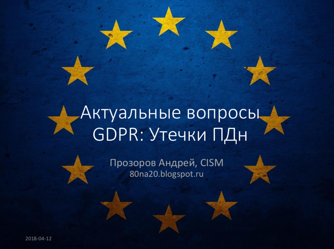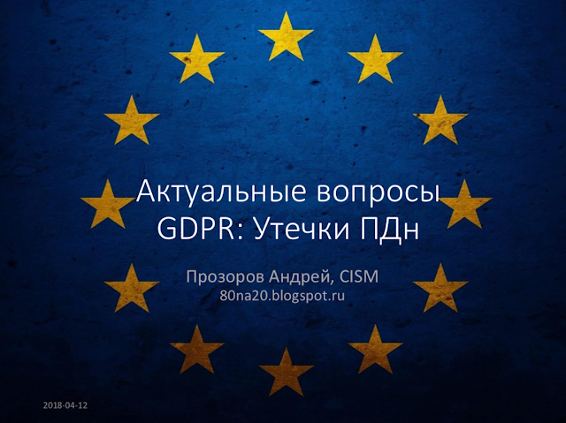 Обратил внимание, что вы интересуетесь моими презентациями - обзорами отдельных положений GDPR. Сделал еще одну (уже четвертую), на этот раз про уведомления об утечках ПДн.