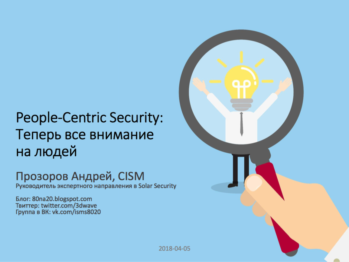 Выкладываю презентацию про People-Centric Security, которую я читал на конференции Код ИБ в Воронеже.