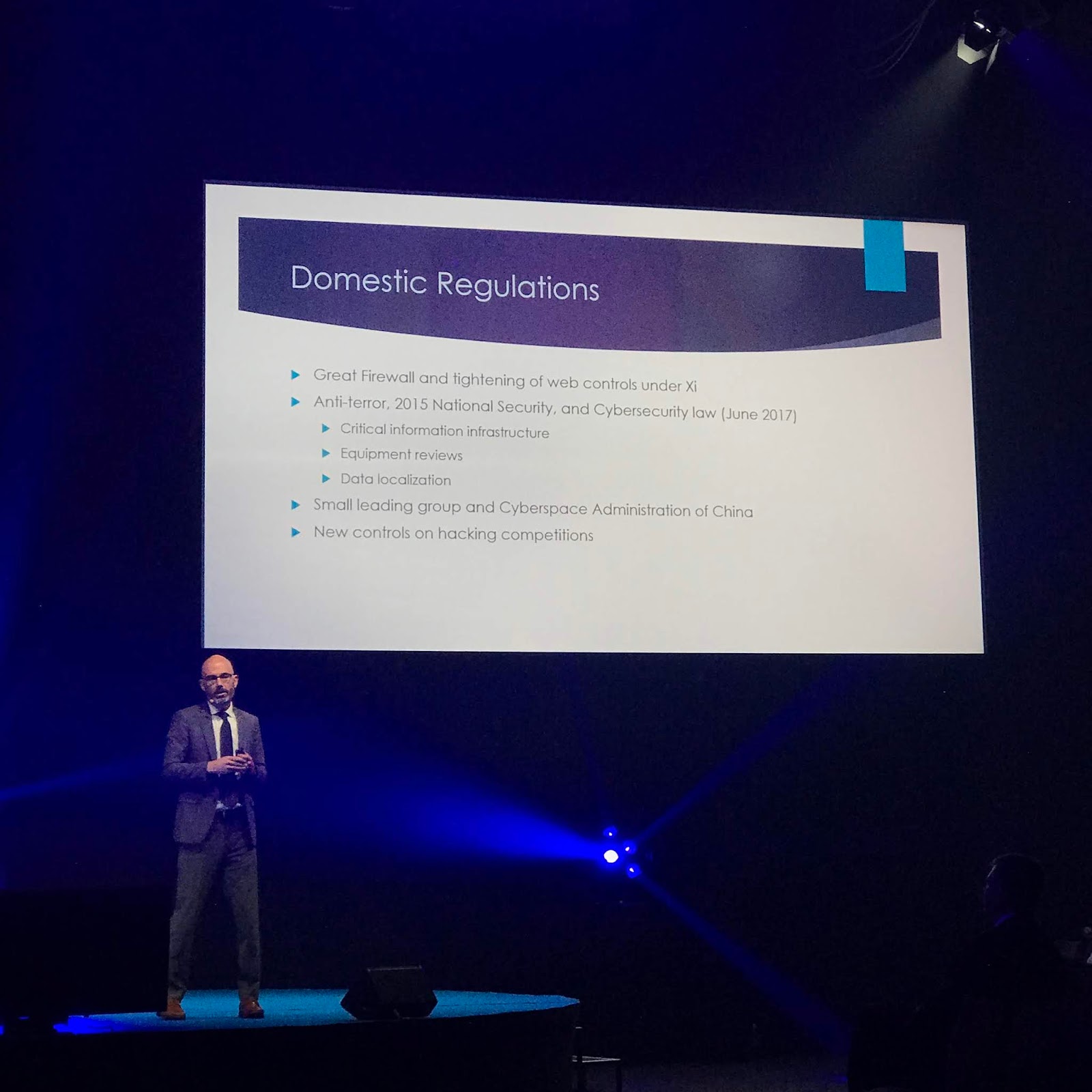 - Была целая серия обзорных докладов про тенденции и перспективы cybersecurity в разных странах Мира (Китай, ЕС, США и просто шикарнейшая презентация про Россию). Кстати, это интересный формат, российским организаторам стоит его взять на заметку.