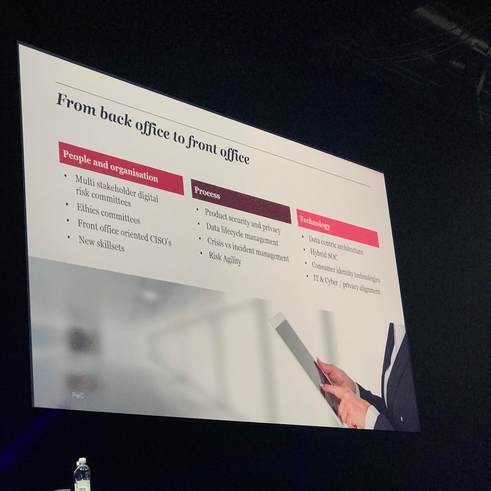 - Grant Waterfall из PwC рассказал про их ежегодный отчет CEO Survey, в котором кибербезопасность занимает ключевую позицию в приоритетах руководителей. Нечто похожее рассказывал и Gus Hunt из Accenture.