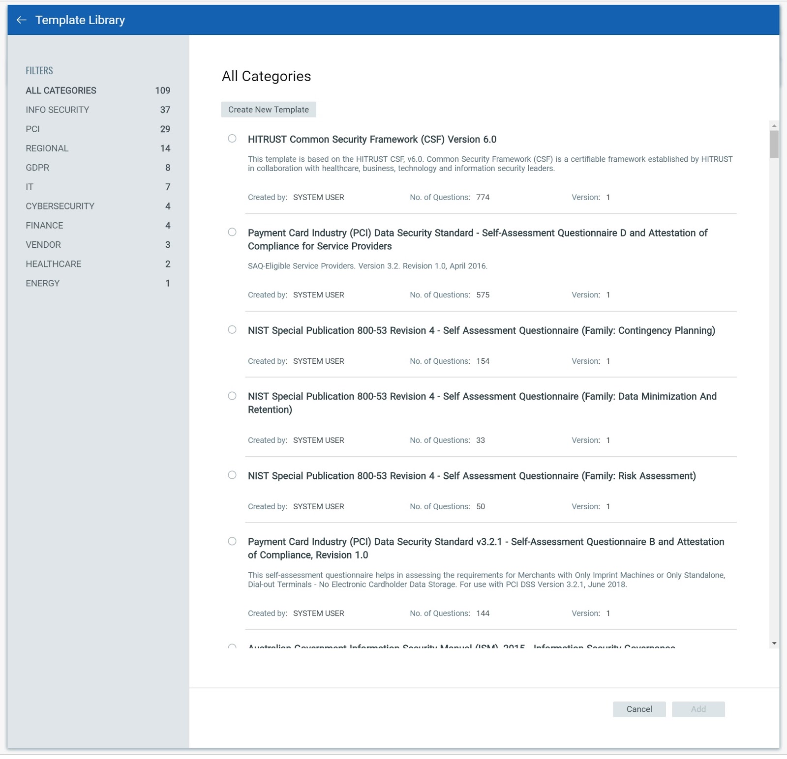 Есть опросники по COSO и другим моделям оценки рисков, есть несколько по оценке поставщиков (Vendor Management). Аналитикам и аудиторам очень понравится эта библиотека.
