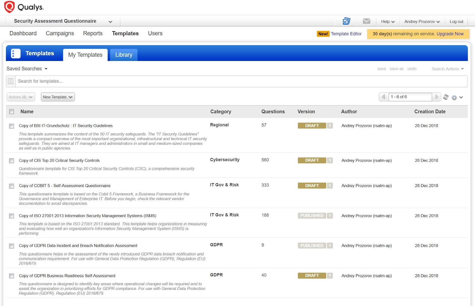 Несколько последних дней уходящего 2018 года посвятил пилотированию/тестированию сервиса Qualys Security Assessment Questionnaire (Qualys SAQ). Это один из модулей облачной платформы Qualys, которая известна, в первую очередь, своим сканером уязвимостей...