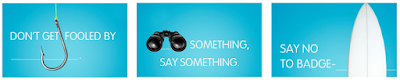 Вот так, например, выглядят плакаты, посвященные тем или иным угрозам безопасности - фишингу, подозрительной активности, проходу на территорию организации без бейджа.