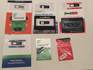 Из сувенирки могу отметить закрывашки окна камеры в ноутбуках. После публикации недавних исследований о возможности "подглядывать" за владельцами уязвимых компьютеров, о том, как защититься от этого, стали писать и говорить многие. Производители сувенирки быстро подсуетились и стали выпускать соответствующие решения. Они недороги и поэтому экспоненты раздавали их направо и налево. Я только за один день набрал штук девять разных "защитных устройств".