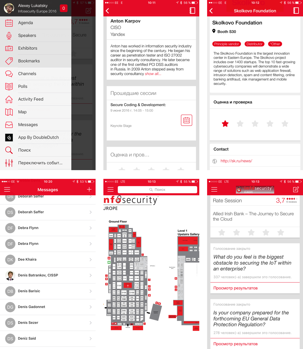 Теперь стоило бы обратиться к фишкам выставки, но новых на самом деле и не было. Я уже обо всех них писал применительно к другим мероприятиям и тому же RSAC. Уже по традиции у мероприятия есть свое мобильное приложение, которое позволяет сделать все, что нужно - сформировать свое собственное расписание, получить информацию об экспонентах и спикерах, вступить в контакт с другими участниками (если они были зарегистрированы в приложении).