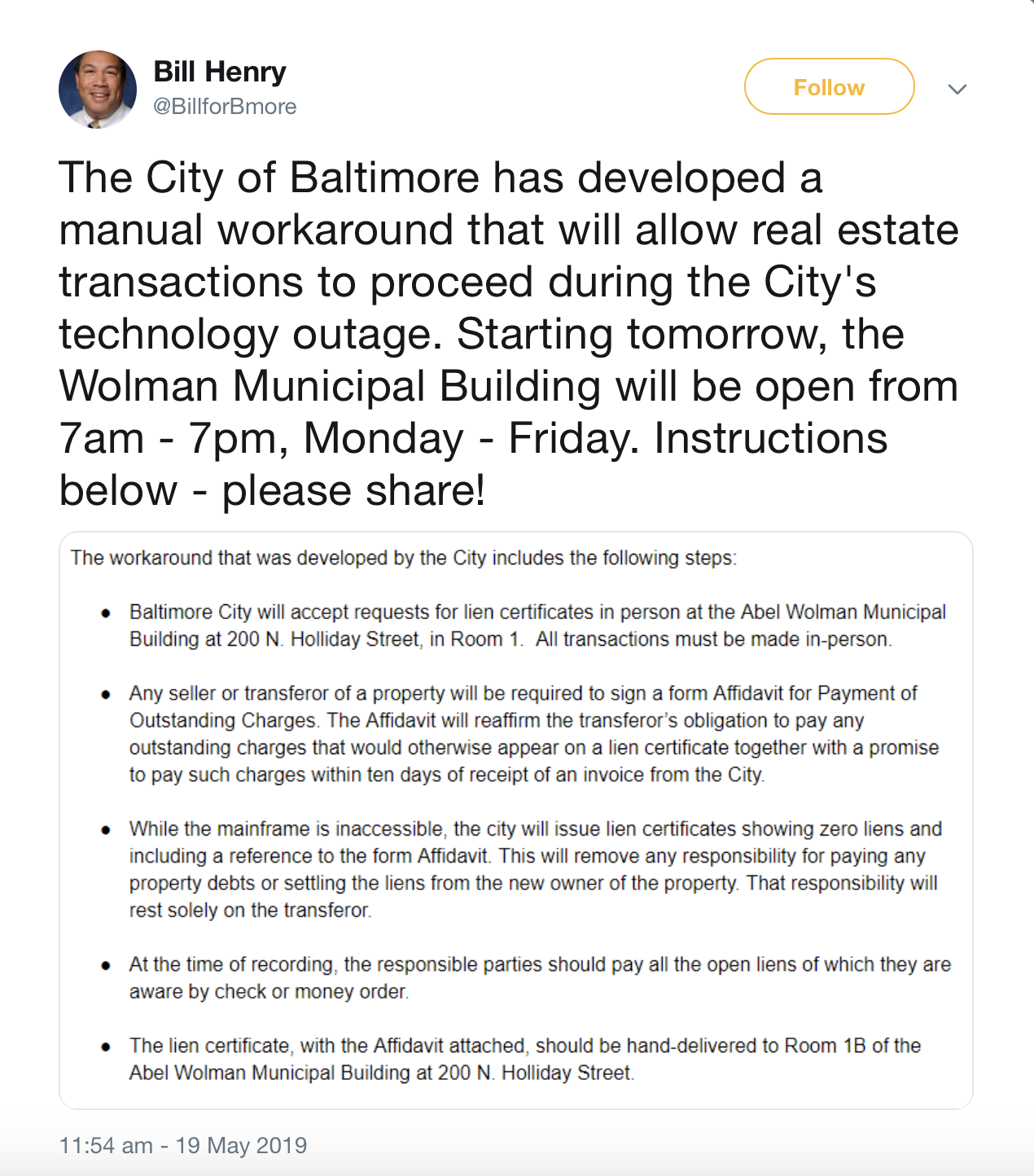 - Плана реагирования на инциденты в муниципалитет не было, что тоже удивительно. План ручного восстановления был разработан спустя две недели после начала эпидемии. Отчасти оправдать это можно тем, что в Балтиморе мэр вступил в должность за несколько дней до эпидемии RobbinHood и многие должности в администрации пустовали, что и привело к хаотическому метанию из стороны в сторону. Прежний мэр ушел в отставку из-за обвинений в растущей коррупции (тоже знакомо, да?).