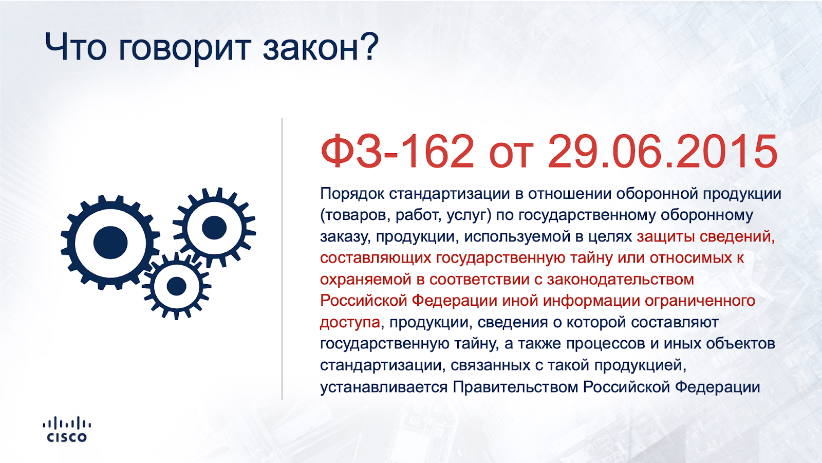 - о стандартизации в отношении продукции, используемой в целях защиты сведений, составляющих государственную тайну или относимых к охраняемой в соответствии с законодательством Российской Федерации иной информации ограниченного доступа, продукции, сведения о которой составляют государственную тайну, а также процессов и иных объектов стандартизации, связанных с такой продукцией.