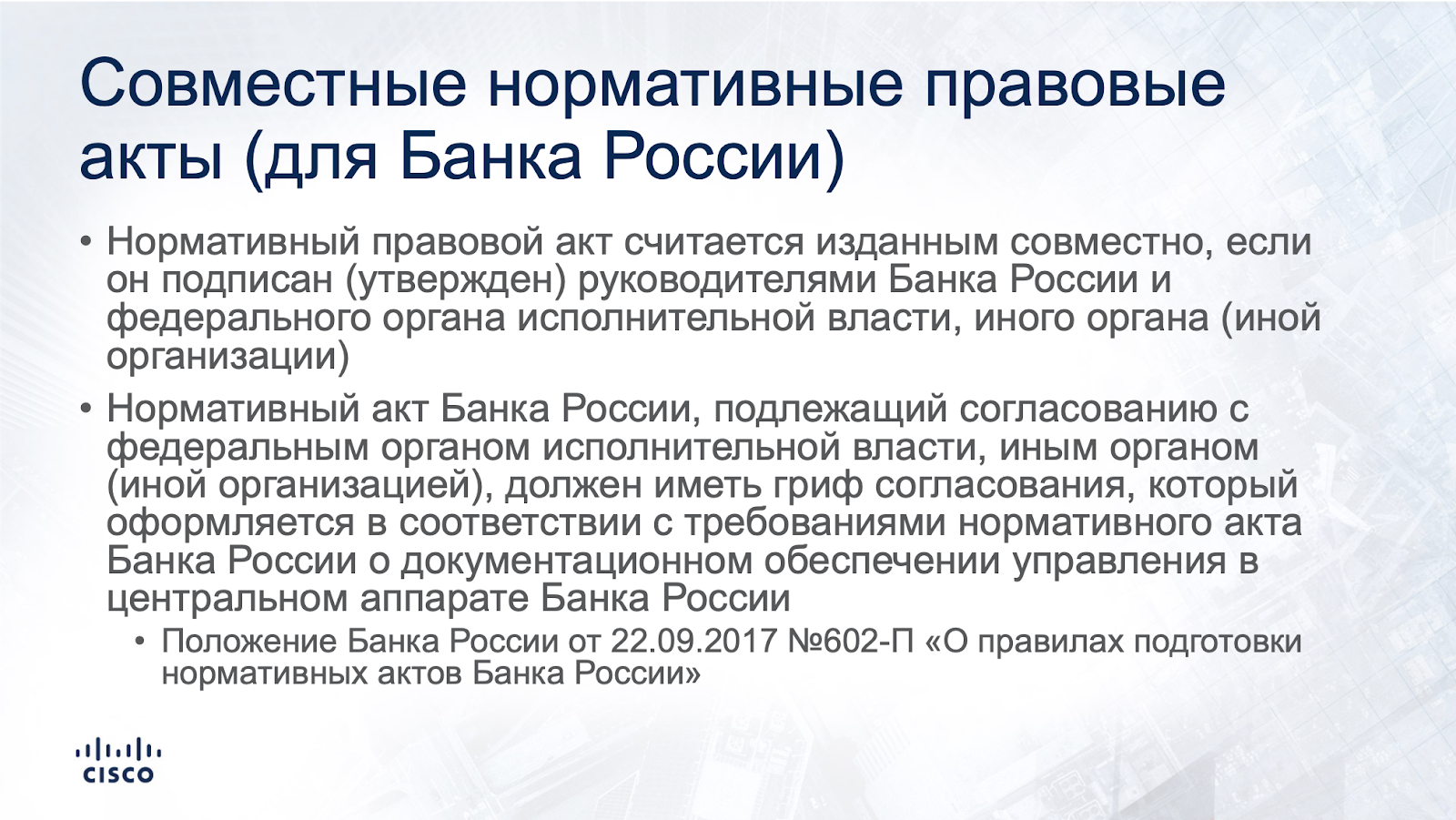 Ну и еще. Вспоминая законы "О Центральном банке" и "О Национальной платежной системе", Банк России имеет право устанавливать обязательные требования по защите информации, но только по согласованию с ФСБ и ФСТЭК. Согласно уже упомянутому Положению Банка России 602-П, нормативный правовой акт считается совместно изданным, если он подписан/утвержден руководителями соответствующих ФОИВ, то есть в нашем случае с ФСТЭК и ФСБ. Те же 382-П, 683-П, 684-П были согласованы с указанными регуляторами по ИБ. И соответствующий гриф согласования должен быть на совместно принятом нормативном правовом акте. А вот ГОСТ 57580.1 это требования снова нарушает - никаких согласующих грифов на нем нет.