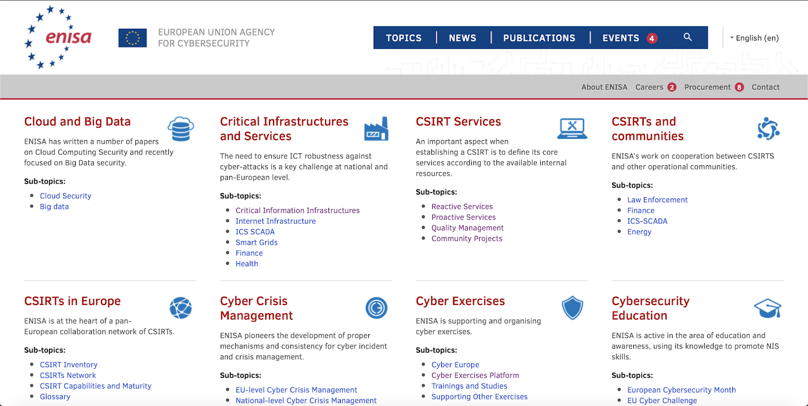 Европейского регулятора по ИБ, ENISA, достаточно сложно сравнивать с ФСТЭК, так как, мне так кажется, ресурсов у первого намного больше, чем у его российского "коллеги". Иначе я не могу объяснить, как ENISA успевает выпускать такое количество добротного контента по совершенно различным темам ИБ. Правда, многие из них, попадают в сферу компетенции НКЦКИ, но и то, что остается (ПДн, КИИ, облака, обучение, сертификация и др.) неплохо охвачено.
