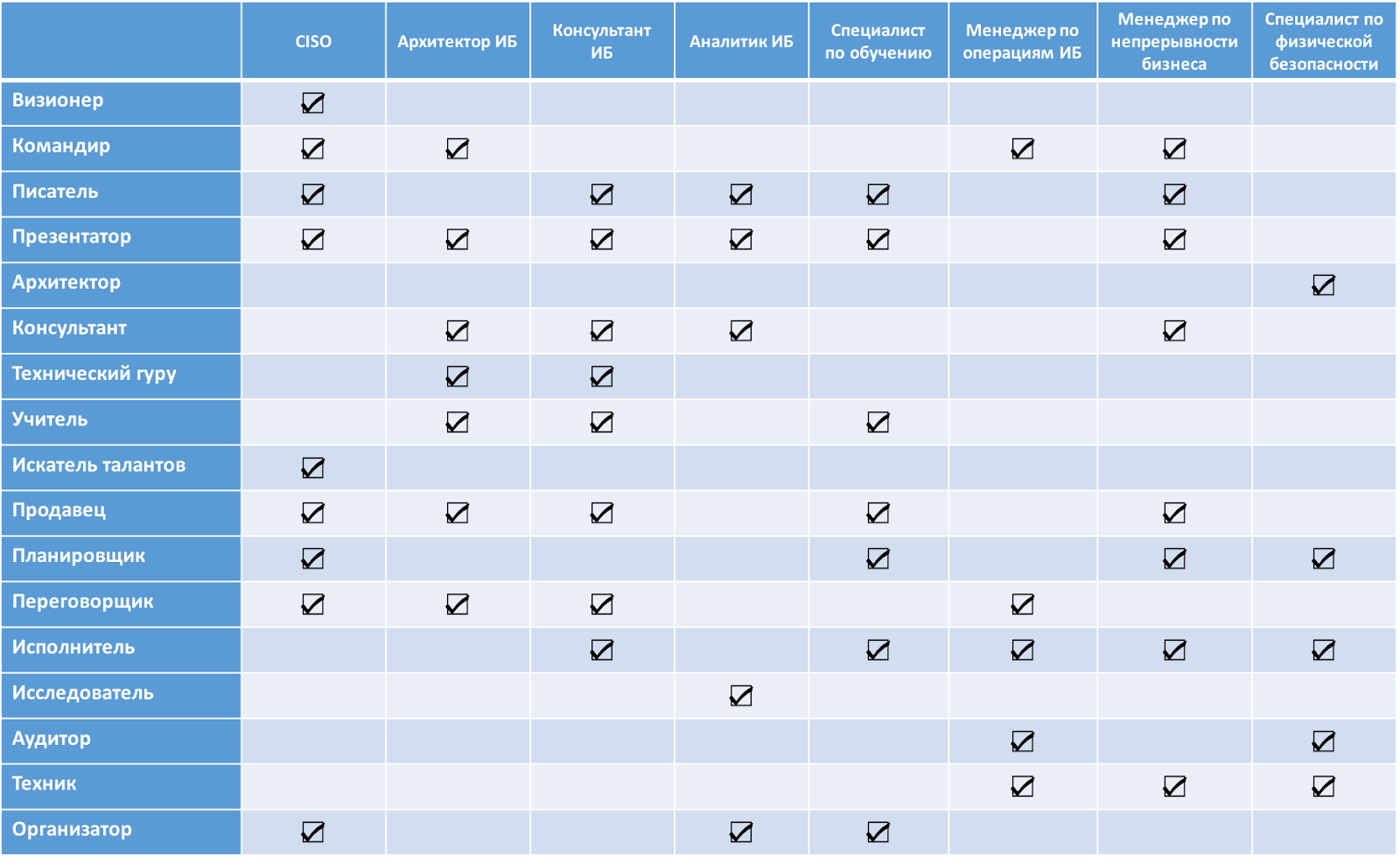 В завершение хочу отметить, что тема компетенций безопасника и вообще "кто такой безопасник" и какими навыками он должен обладать всплывает с завидной регулярностью. Человек, обвиняющий других в том, что они "неучи", чего-то не знают, умеют только бумажки писать и т.п., обычно сам недалеко ушел от возраста ребенка, когда все возводят в степень n, когда юношеский максимализм так и брызжет во все стороны. Кто-то умудряется и в 40 лет оставаться таким же твердолобым и упертым :-) Ну, ФСТЭК ему судья :-) Я же просто напомню, что на службу ИБ сегодня навешивают очень много разных задач, что подразумевает не только совершенно различные ее структуры (а я про это недавно писал), но и совершенно разные роли у самих безопасников в зависимости от решаемых задач.