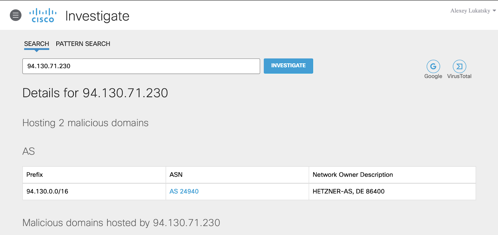 Но вот дальше интереснее. Все эти домены, принадлежащие разным ООО (а я быстренько проверил владельцев фирм, которые стоят за этими доменами), "висят" на одном IP-адресе - 94[.]130[.]71[.]230.