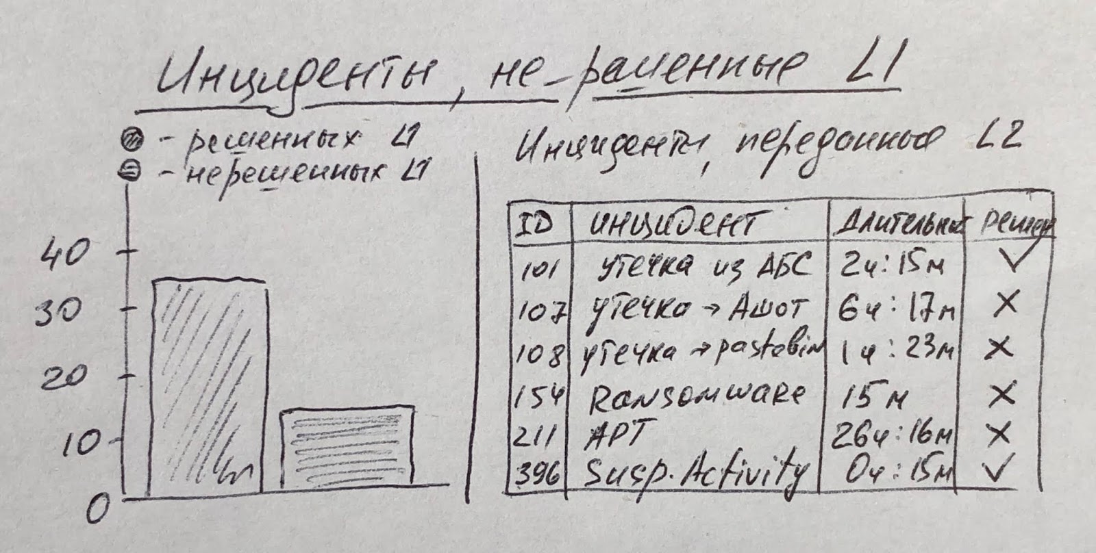 Если инцидент не был разрулен на первой линии SOC, то он передается на вторую линию (не эскалируется, как ошибочно считают многие). Посколько аналитиков второй линии в SOC обычно меньше (бывают исключения) и они дороже обходятся компании, то их избыточная нагрузка может негативно сказаться на показателях работы SOC. Аналитики L1 могут по ошибке, незнанию или умышленно передавать даже простые инциденты на вторую линию, чтобы соблюсти свои показатели деятельности (своевременно закрыт инцидент). Поэтому нам надо отслеживать, какие инциденты передаются на L2 и по какой причине, например, так: