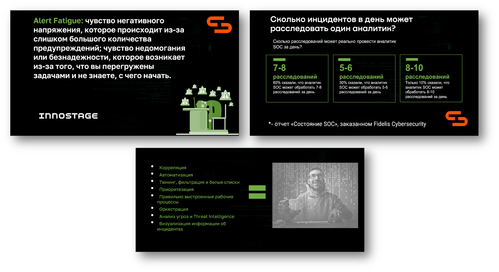 Следующий поток был посвящен людям, процессам и задачам. Открывал его Алексей Павлов из Ростелеком-Солара (кстати, имя "Алексей" было самым популярным среди спикеров SOC Live, - 9 человек носили его; еще было 4 Антона и 4 Александра). Алексей рассказывал свой опыт пресейла аутсорсингового SOCа и те проблемы, с которыми заказчики приходят в Ростелеком-Солар.После небольшой минутки юмора, состоящей из выступлений "безопасного стендапа", начался круглый стол по применению SOCов на производстве и мониторинге промышленных площадок. Я на Хабре уже тоже как-то писал о нашем опыте мониторинга таких систем.