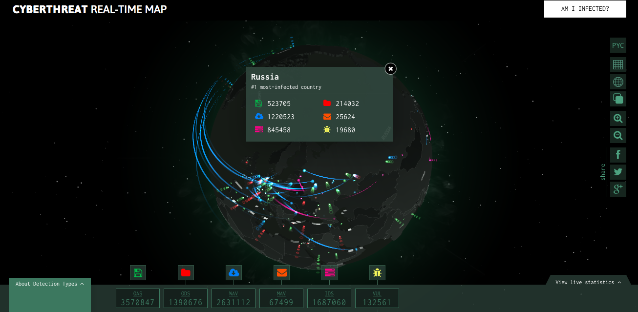 Может кто еще не видел и кому будет полезно - карты атак в реальном времени, отображающие вредоносную и хакерскую активность. В реальной жизни служб ИБ помогает не сильно (если не рассматривать национальные CERTы), но может использоваться для анализа тенденций, медитаций или просто как динамический фон при общении с журналистами. Все они используют схожую методику для своей работы, но вот сенсоры у них разные (количество и место установки), а поэтому и результаты тоже. Все ресурсы (исключая последний) бесплатны.