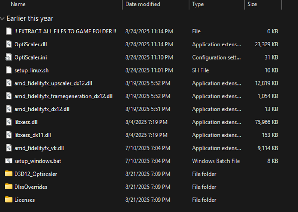 Найдите файл amdxcffx64.dll и скопируйте его в папку с игрой и Optiscaler.