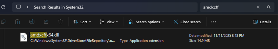 Последний шаг перед запуском — перенести файл amdxcffx64.dll из системной директории Windows.