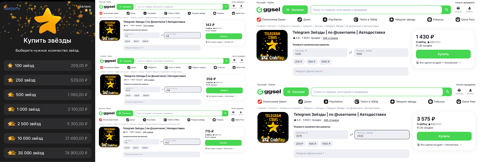 Процесс покупки прост: выберите продавца, введите никнейм в Telegram, подтвердите оплату — и звёзды будут зачислены автоматически.