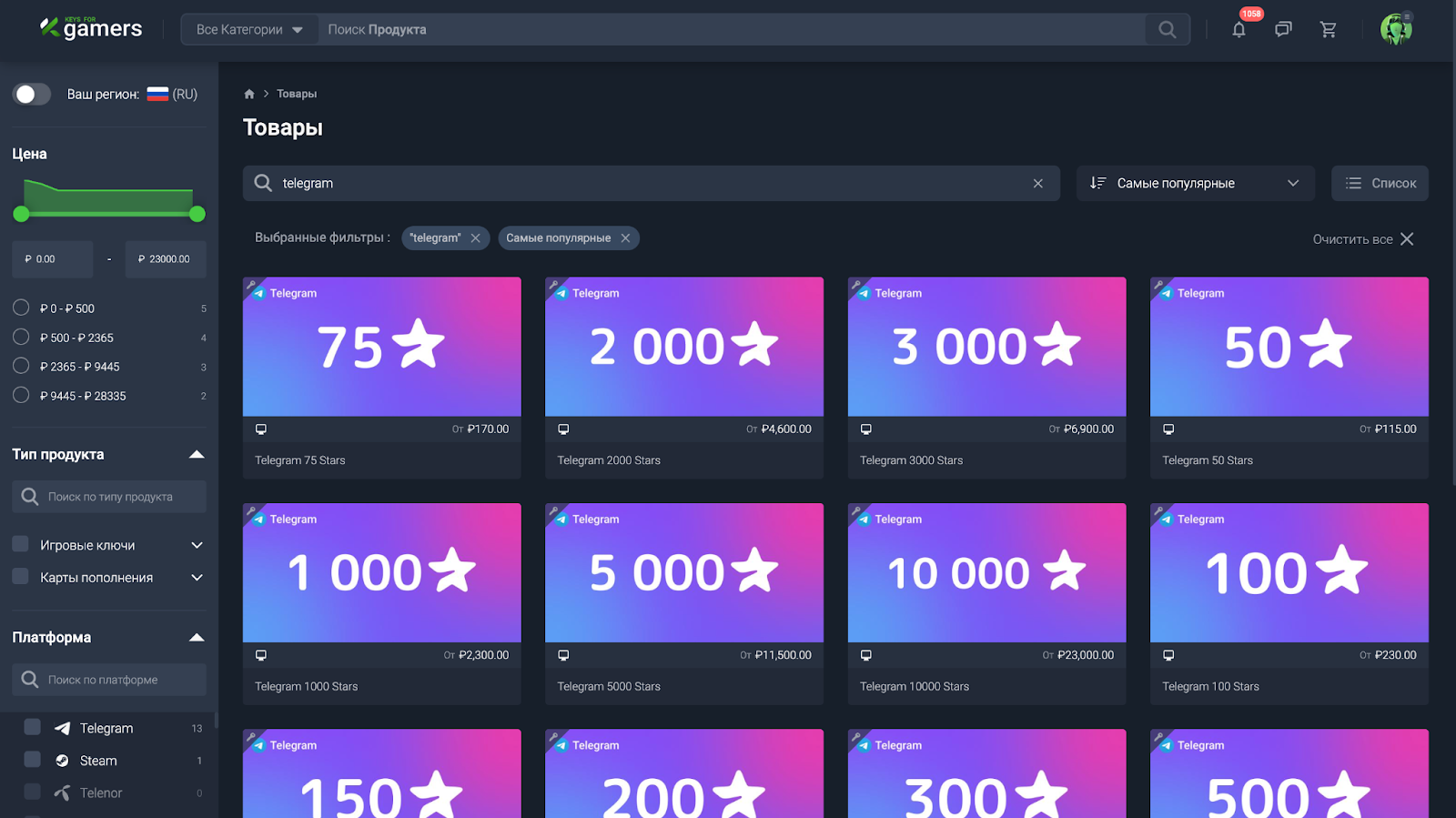 Keysforgamers — международная площадка, где купить Telegram Stars можно наряду с другими цифровыми товарами: играми, подписками, подарочными кодами. Сервис работает с надёжными продавцами и регулярно предлагает выгодные курсы, что делает его хорошим выбором для тех, кто ищет, где купить звёзды Телеграм дешево.