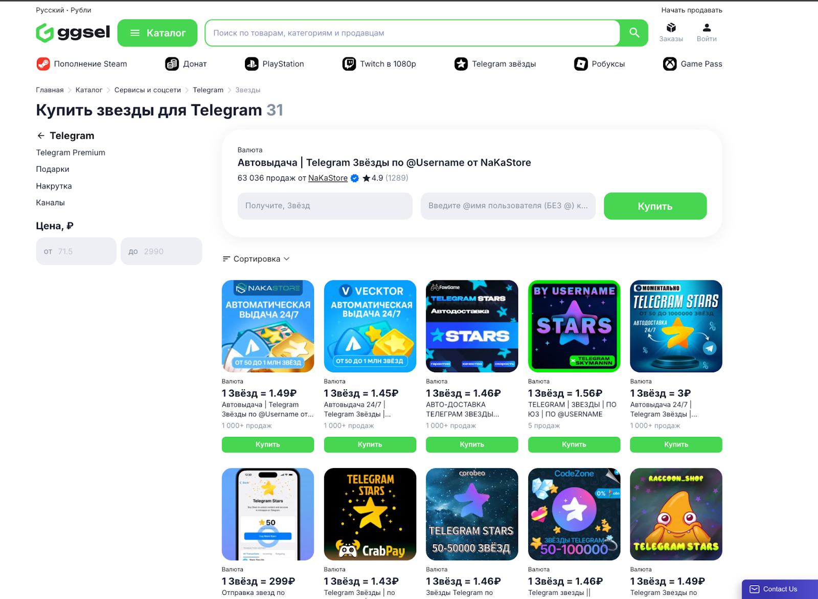 GGSEL — официальный маркетплейс для покупки Telegram Stars и Premium-подписок, где все продавцы проходят модерацию;