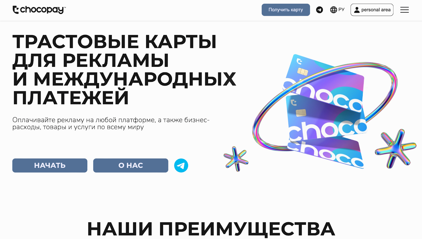ChocoPay—сервис для оформления виртуальной карты онлайн