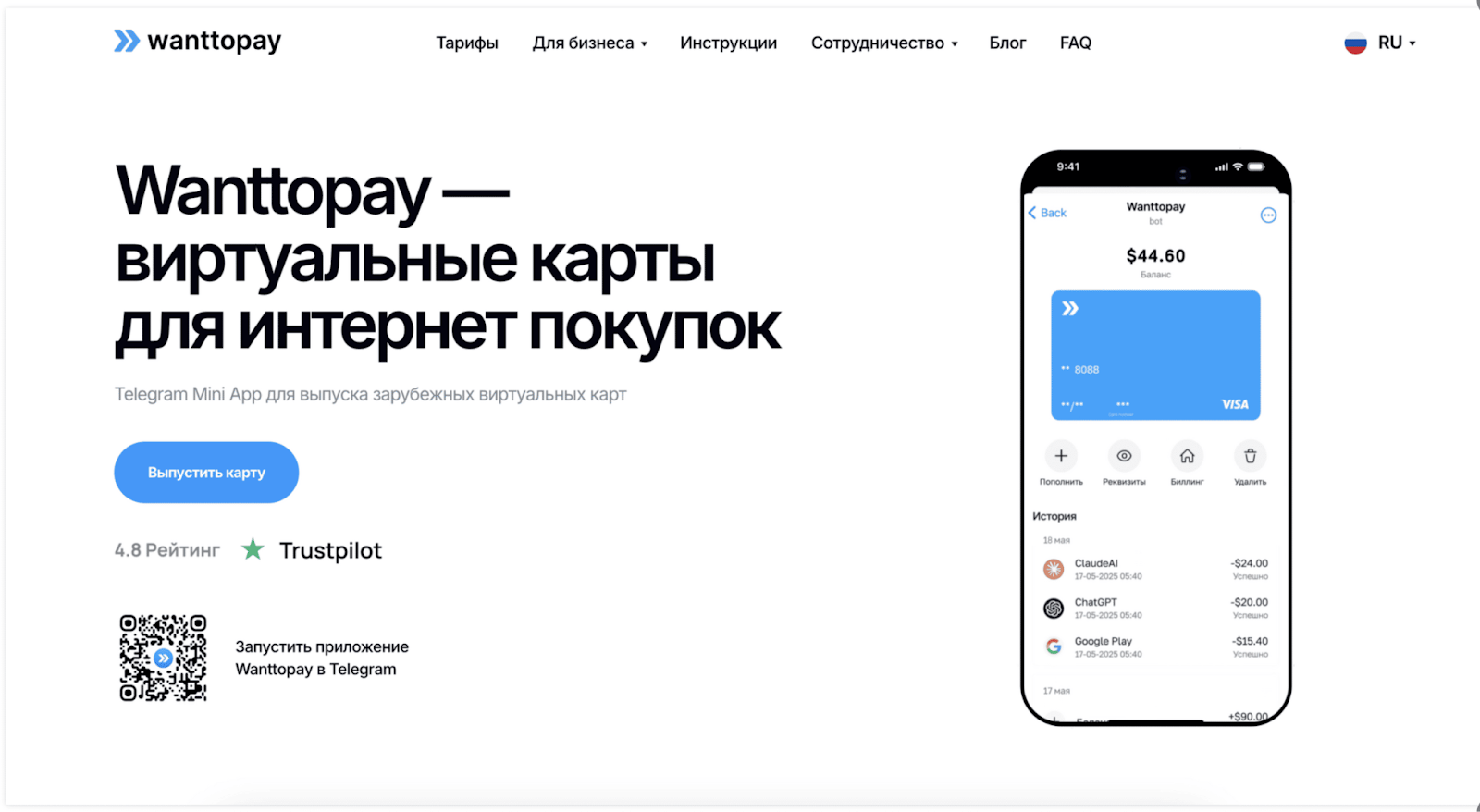 WantToPay—сервис для оформления виртуальной карты онлайн