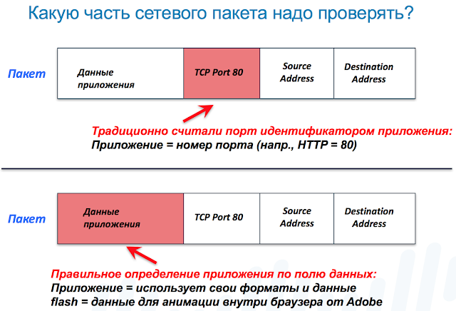 Программисты хотят, чтобы вам было удобно! Чтобы вы поставили skype и он сразу "засветился зелененьким". Вы получите удовольствие от того факта, что вам не потребовалось уговаривать администратора прописать правила на межсетевом экране, поскольку такие приложения находят и используют уже открытые поты для других приложений. Такими портами являются часто порты 80, 53, 123, 25, 110. Или же программа забирает и использует настройки прокси-сервера из браузера. Современные средства защиты не идеальны. Их тоже пишут программисты. 20 лет назад при создании Интернет договорились, что для идентификации приложений будут использоваться порты. 80 - HTTP, 25 - SMTP, 21 - FTP и так далее. Ситуация изменилась: внутри этих портов могут ходить любые приложения. Изменились ли средства защиты? Могут ли они определить что по стандартному порту для HTTP (порт 80) сейчас идет другое приложение, отличное от HTTP?