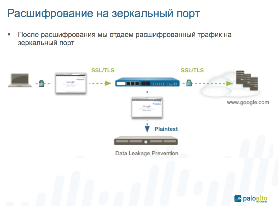Пример: Расшифрованный трафик может быть использован сторонними продуктами, например DLP.