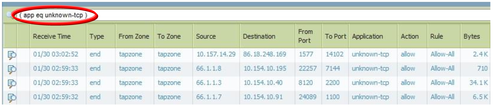 Реальный пример.В сети существует трафик, который не получается идентифицировать по его содержимому. Будем называть его неизвестным трафиком. В небольших количествах неизвестный трафик присутствует в каждой сети, при этом даже незначительный неизвестный трафик представляет существенный риск для вашей организации. Нам нужно понимать кто этот трафик создает и зачем! Существует целый ряд важных факторов, имеющих отношение к неизвестному трафику, которые следует учитывать: можно ли его хоть как-то классифицировать, можно ли сократить его до минимума, используя политики безопасности, может ли ваш межсетевой экран легко определять самописные пользовательские приложения так, чтобы они переходили в категорию известных приложений и могли указываться в вашей политике безопасности, и способен ли ваш межсетевой экран определить, представляет ли неизвестный трафик угрозу? Неизвестный трафик тесно связан с сетевыми угрозами. Злоумышленники часто модифицируют потоки данных, чтобы воспользоваться недостатками нужного приложения.