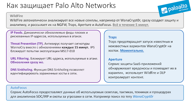 Песочницу Wildfire, защиту облаков Aperture, базу Theat Intelligence которая поставляет сигнатуры IoC в виде IP, DNS, URL, можно протестировать механизм защиты DNS Sinkholing, также получить доступ к базе данных для расследования инцидентов autofocus.paloaltonetworks.com.