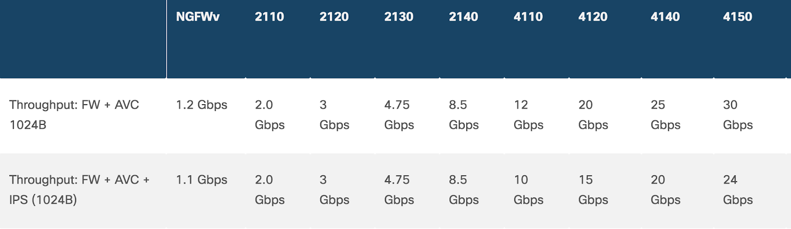 Ссылки на официальную страницу Cisco из которой взяты данные https://www.cisco.com/c/en/us/products/collateral/security/firepower-ngfw/data_sheet-c78-736661.html