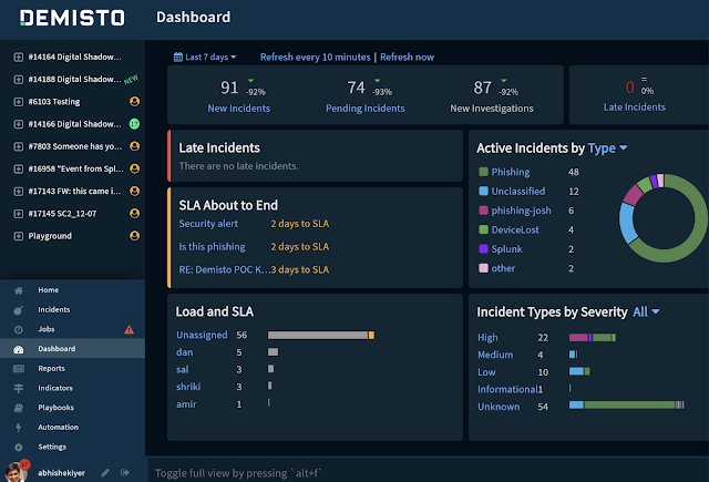 Здесь много продуктов и я постепенно осваиваю продукт Demisto - он позволяет подключаться к существующим или реализовать системы управления инцидентами, автоматически обогащает каждый инцидент нужной информацией, подключает других сотрудников, пишет им запросы, проверяет чтобы сотрудники вовремя на них ответили, не забывает им напомнить, потом строить отчеты и графики эффективности внутренних процессов ИТ и ИБ.
