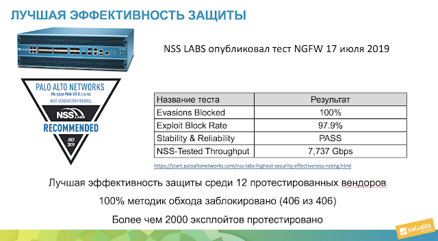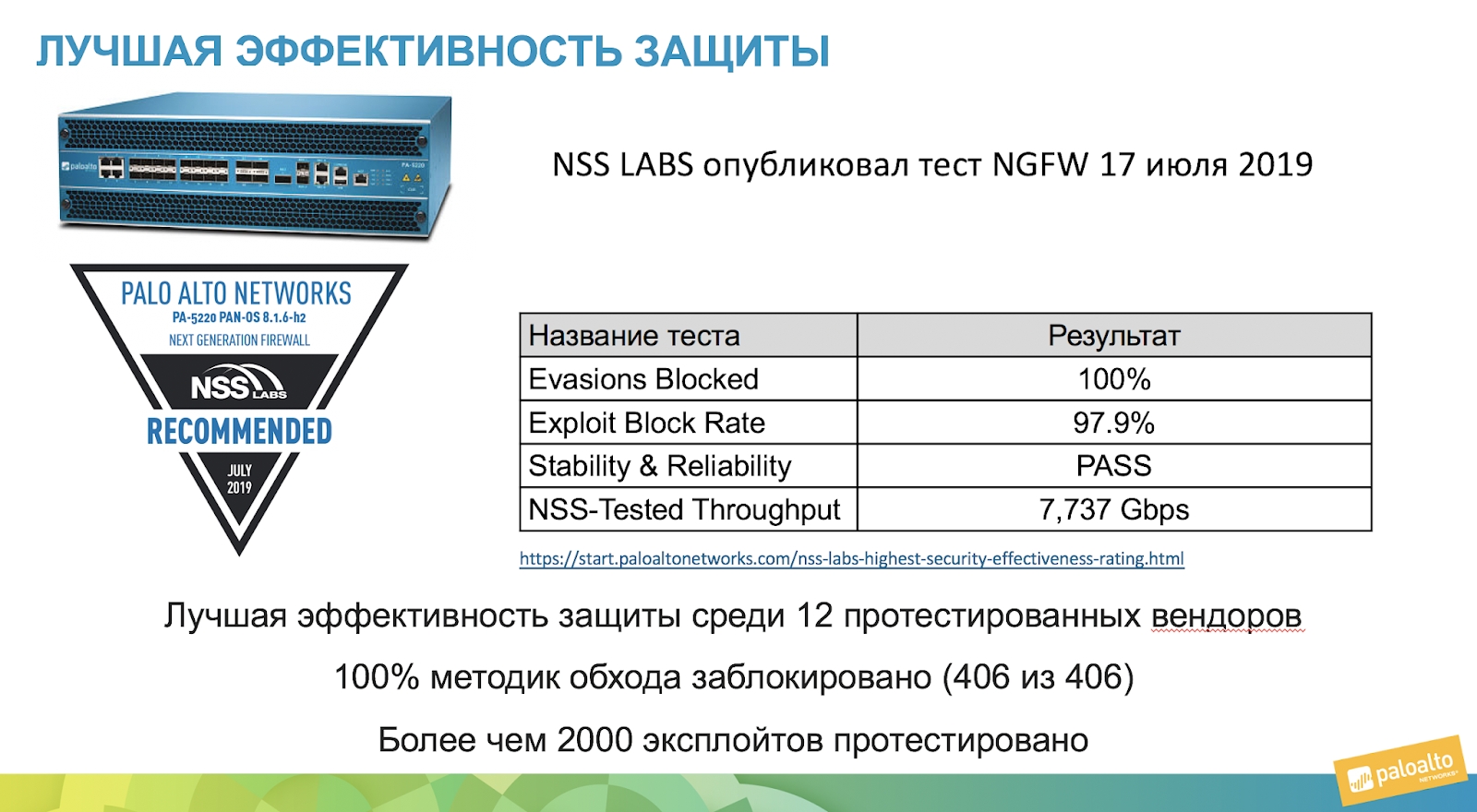 Palo Alto Networks NGFW является лидером рынка по отчетам Gartner и NSS Labs уже много лет.