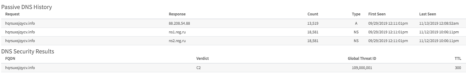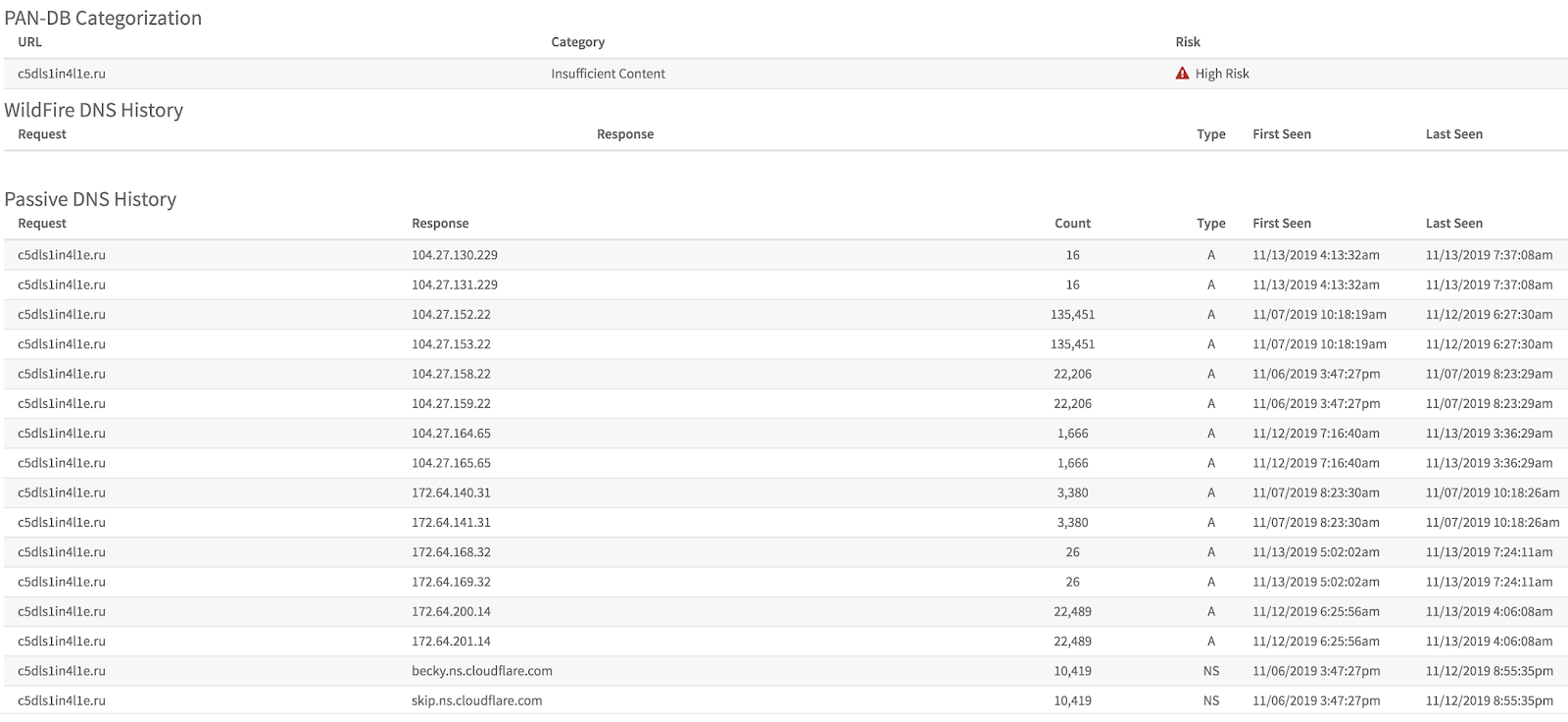 Если посмотреть в базе Autofocus данный домен, то он обнаруживается пассивным DNS на большом количестве устройств