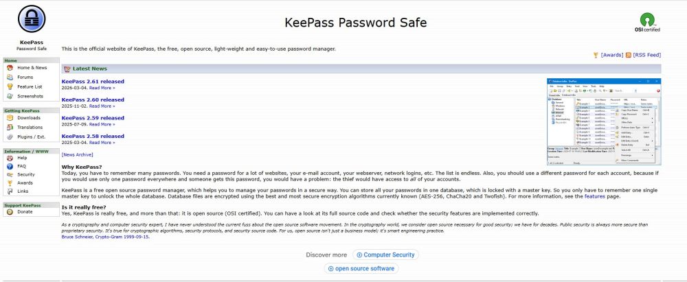 KeePass дает ту самую автономность, за которой обычно и приходят. База лежит рядом, интернет не нужен, учетная запись не нужна, чужой сервис в процессе не участвует. Для изолированных рабочих машин, личного архива или людей с выраженной аллергией на внешние сервисы - подход до сих пор очень силен. Криптография у проекта взрослая, формат KDBX давно стал стандартом для целой экосистемы совместимых клиентов.
