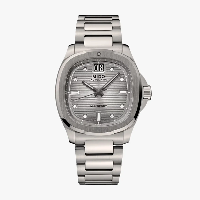 Mido Multifort TV Big Date Titanium — «телевизор» из титана с крупной датой и удобной читаемостью. Официальная страница: Multifort TV Big Date Titanium.