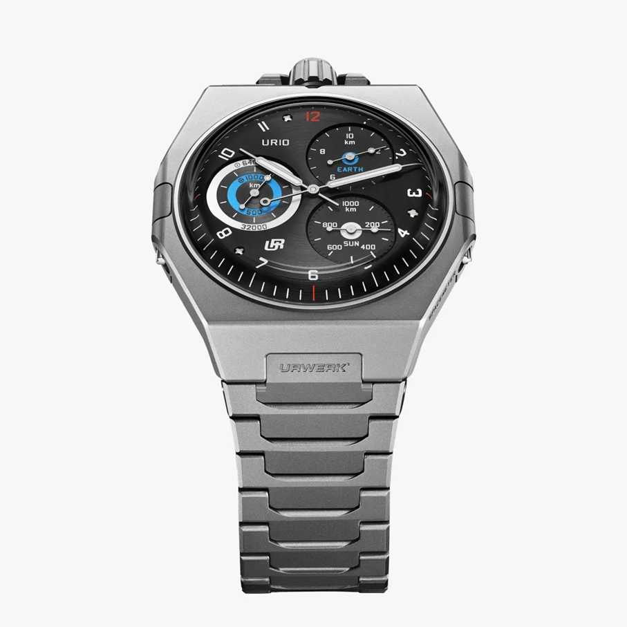 Urwerk UR-10 SpaceMeter — часы, которые считают не только время, но и «пространство»: специальная индикация вращения и орбиты Земли. Официальная страница: UR-10 SpaceMeter.